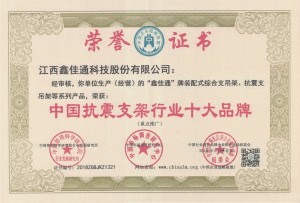 • 我們擁有多年抗震支吊架生產經驗,獲多項國家專利、國家檢測機構頒發檢測報告證書,我司生產的抗震支吊架是江西省住房和城鄉建設廳重點推廣產品,現有廠房、生產設備等固定資產投資過億。